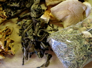 Sun dried wild mushrooms, herbs grown at our farm, instructions