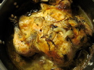 Roast, covered in oven about 2 hours until chicken