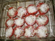 mozzarella slices with sliced tomatoes.